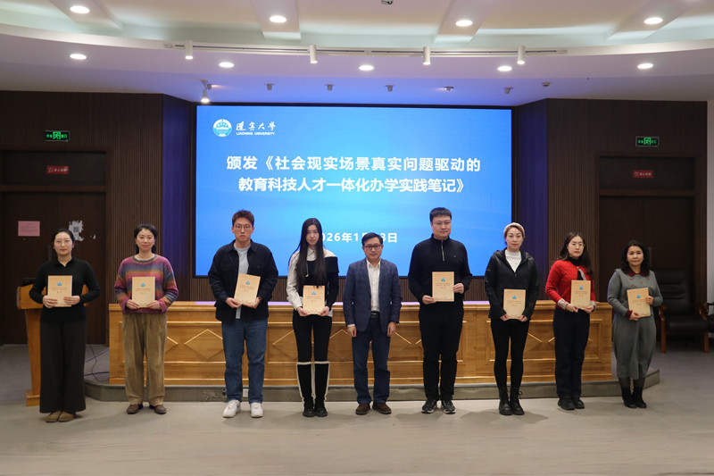 会上,张兴宏为国际教育学院师生代表颁发《社会现实场景真实问题驱动的教育科技人才一体化办学实践笔记》。